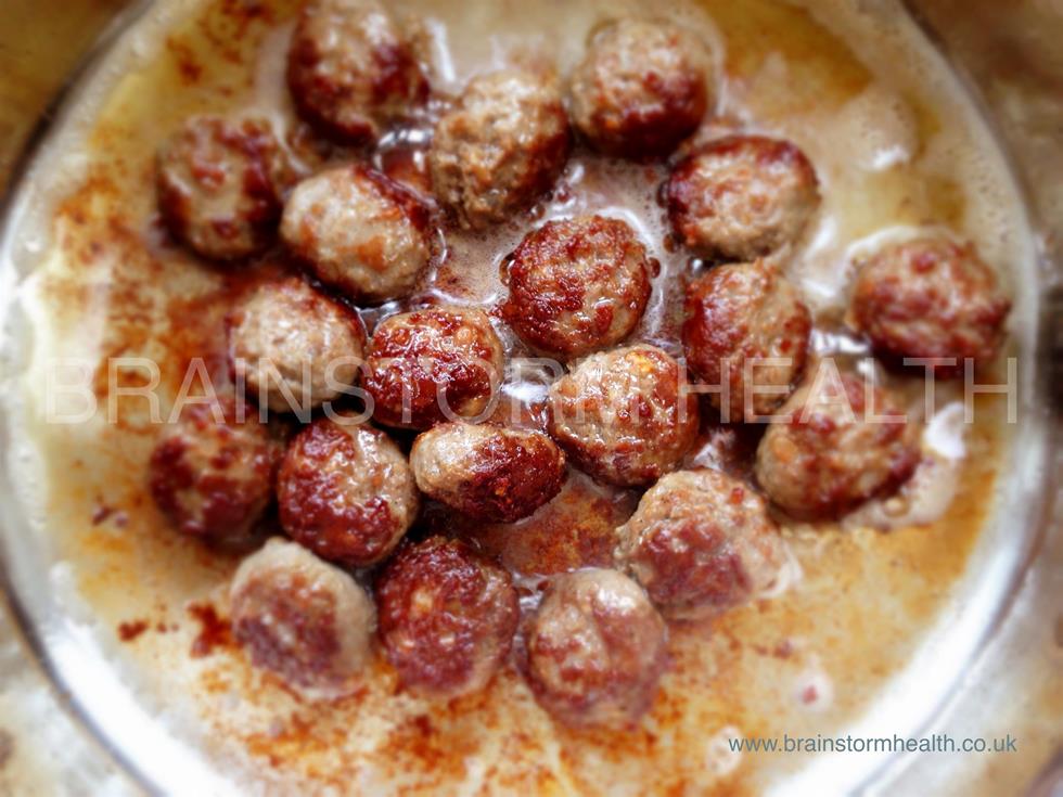 • Heat the oil in a pan and cook the meatballs through – it will take about 15 minutes